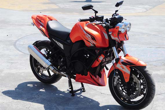 Berikutnya Surya tidak mau hanya itu saja. Meskipun tidak melakukan rombakan yang banyak di wilayah bodi, tapi sudah terkesan dia ingin motor terlihat lebih gagah daripada aslinya.